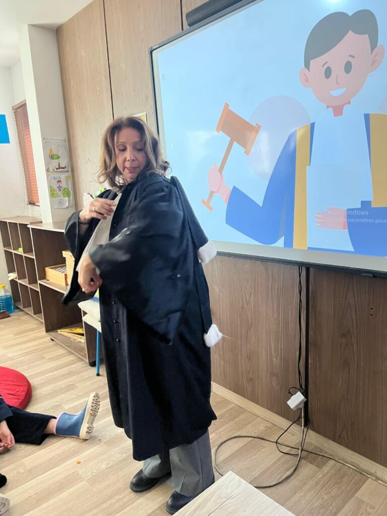 Le métier d’avocat est souvent très populaire chez les enfants : défendre la veuve et l’orphelin revêt un caractère à la fois symbolique et profondément juste, une image qui cache aussi une réalité plus complexe. La présentation de la maman d’Aicha Kilani, venue expliquer son métier d’avocate, aux élèves de 5ème année Églantine dans le cadre des Journées des métiers de l’Institution Laghmani, avait notamment pour objectif de faire découvrir cette profession plus en détails. À travers un échange vivant et accessible, elle a expliqué le rôle de l’avocat, son quotidien professionnel et l’importance du droit dans la société. Maître Kilani a également détaillé la robe d’avocat, sa symbolique et sa fonction. Les élèves ont découvert les notions de justice, de défense et de responsabilité, tout en posant de nombreuses questions.